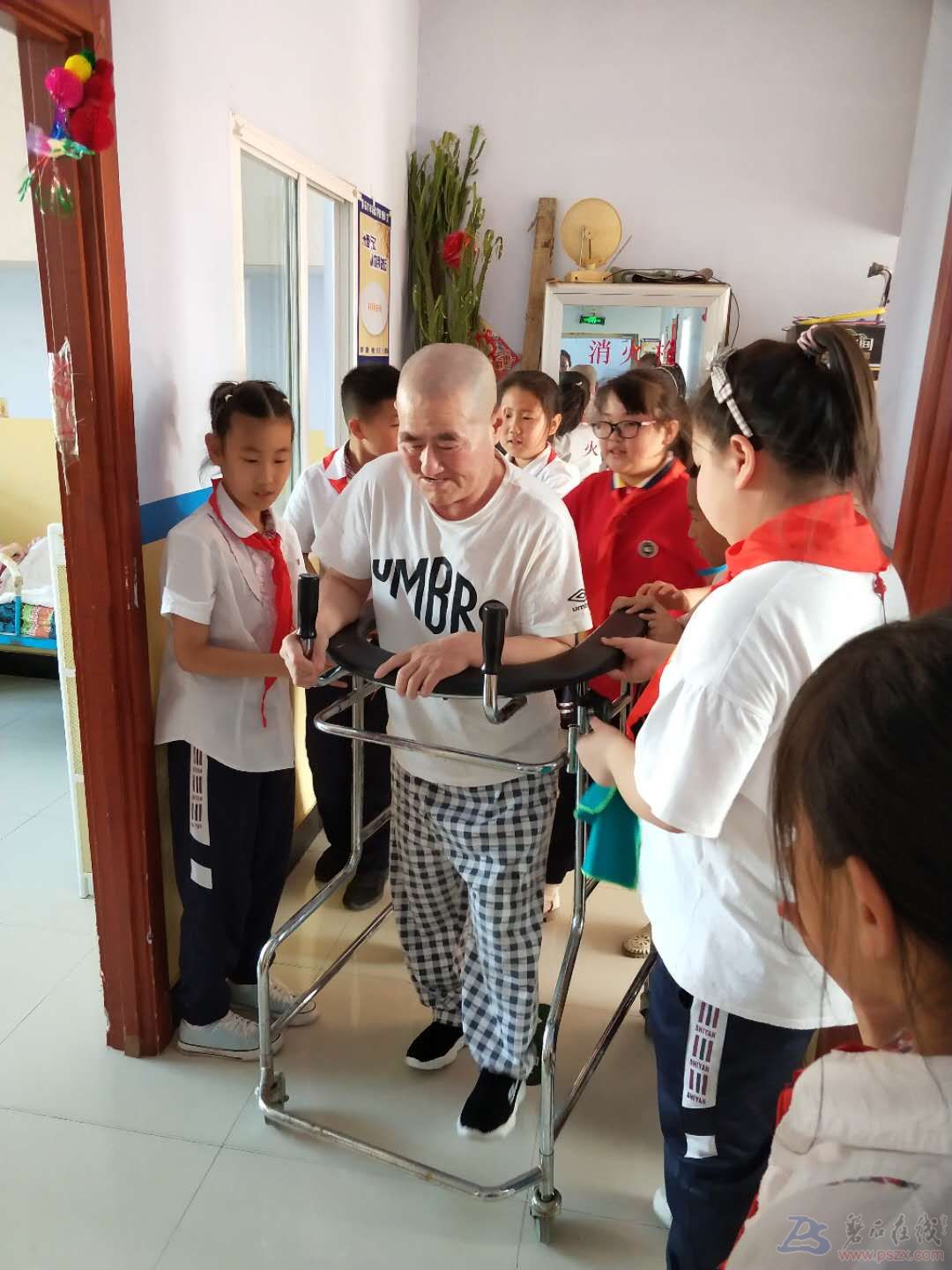 磐石市实验小学 三年二班班主任孙丽老师带领全班同学,于2019年6月19日又一次来到《幸福之家养老院》,带领孩子们慰问敬老院送温暖献爱心,目的在于树立磐石市实验小学生的形象,弘扬尊老爱老的传统美德,继续努力办好我们三年二班的“慰问敬老院”的主题活动,持之以恒。让同学们体验作为一名小学生应具备的社会道德素质和集体主义精神。给老人们的平淡生活增添一抹色彩,同时也让他们感受到来自社会对他们的关怀和帮助。 陪老人们聊天,让他们回忆美好的往事,注意倾听;帮老人捶背;陪老人下棋;给老人剪指甲;为敬老院打理花花草草.擦玻璃;拖地...... 给老人们呈现一台简单的演出。里面包含一些革命歌曲,儿童歌曲、舞蹈、乐器表演等。让老人们回味当年的时光。 (照片文字由二班家长提供) |
